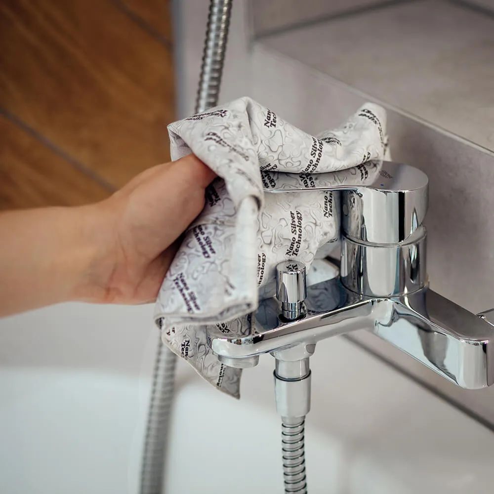 - Przy uporczywych śladach zwilż czyścik lub spryskaj miejsce Silver Water, następnie wypoleruj na sucho.